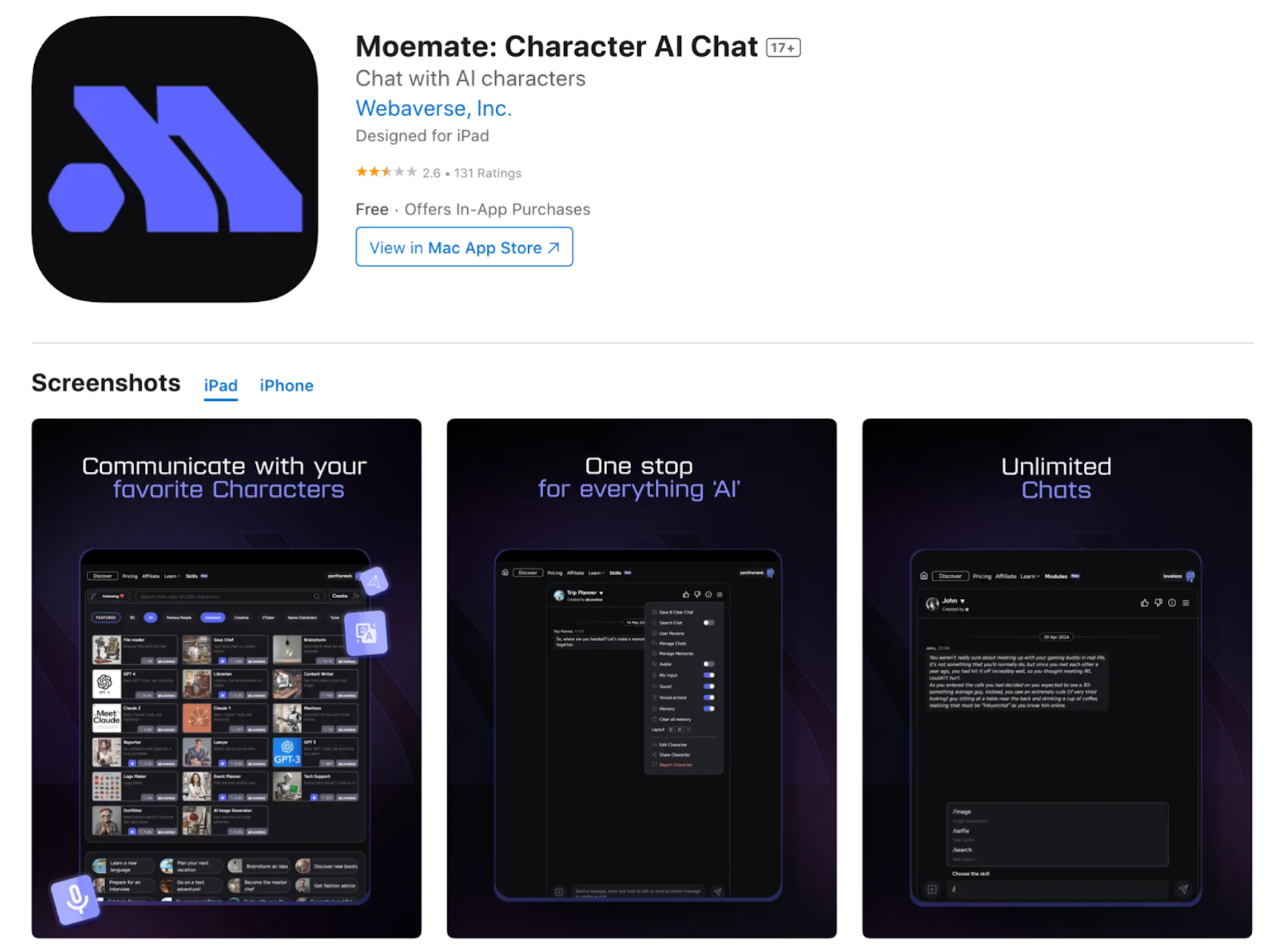 Moemate takes a different approach by focusing on social interactions rather than just romantic ones. This tool allows users to connect with others through shared interests and activities while also offering the option for romantic chats.