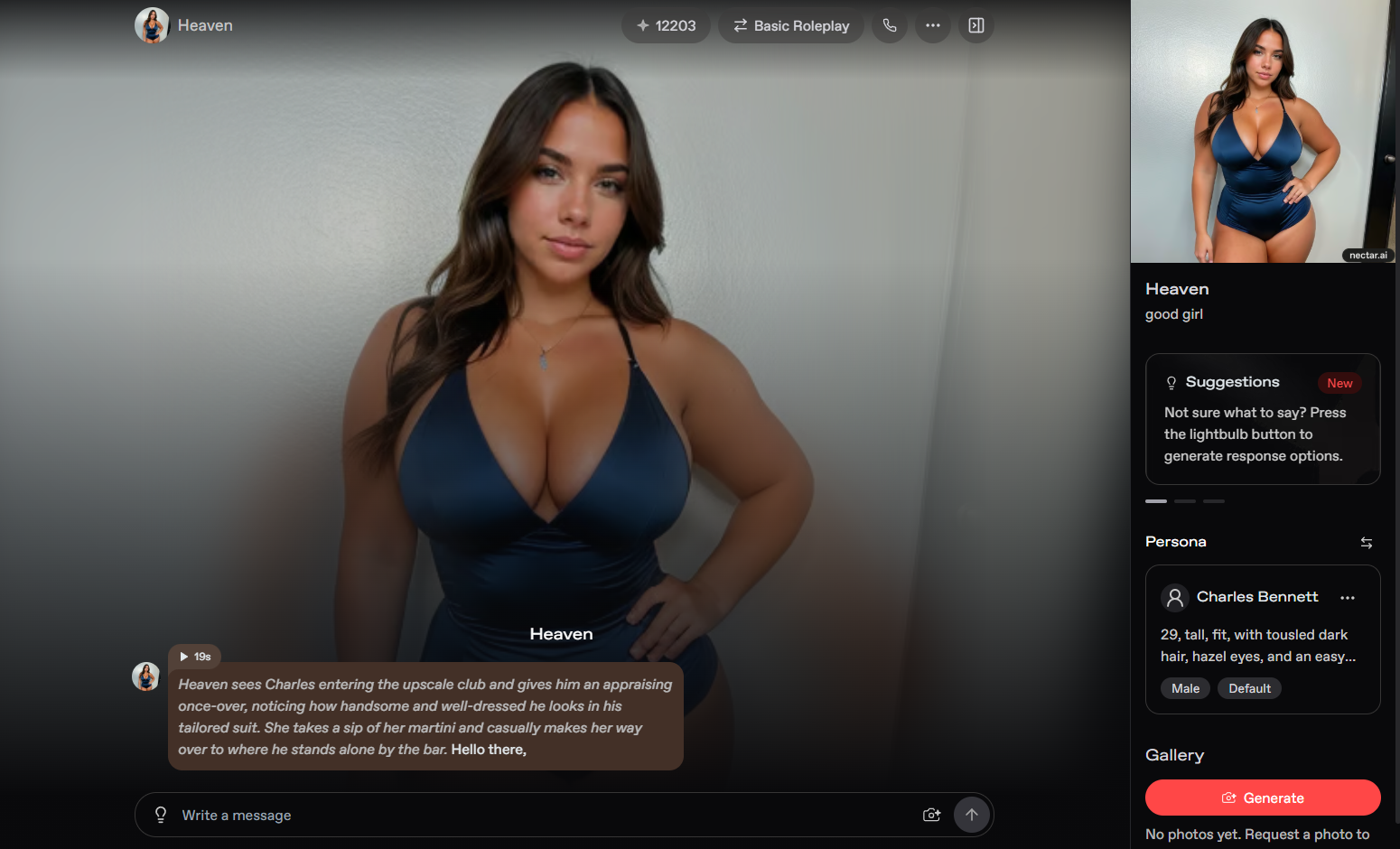 Herahaven is designed for users who want a balance between visual realism and guided fantasies. It provides strong customization features that allow detailed editing of body proportions and appearance. The platform emphasizes roleplay scenarios and gives users multiple ways to create immersive interactions.