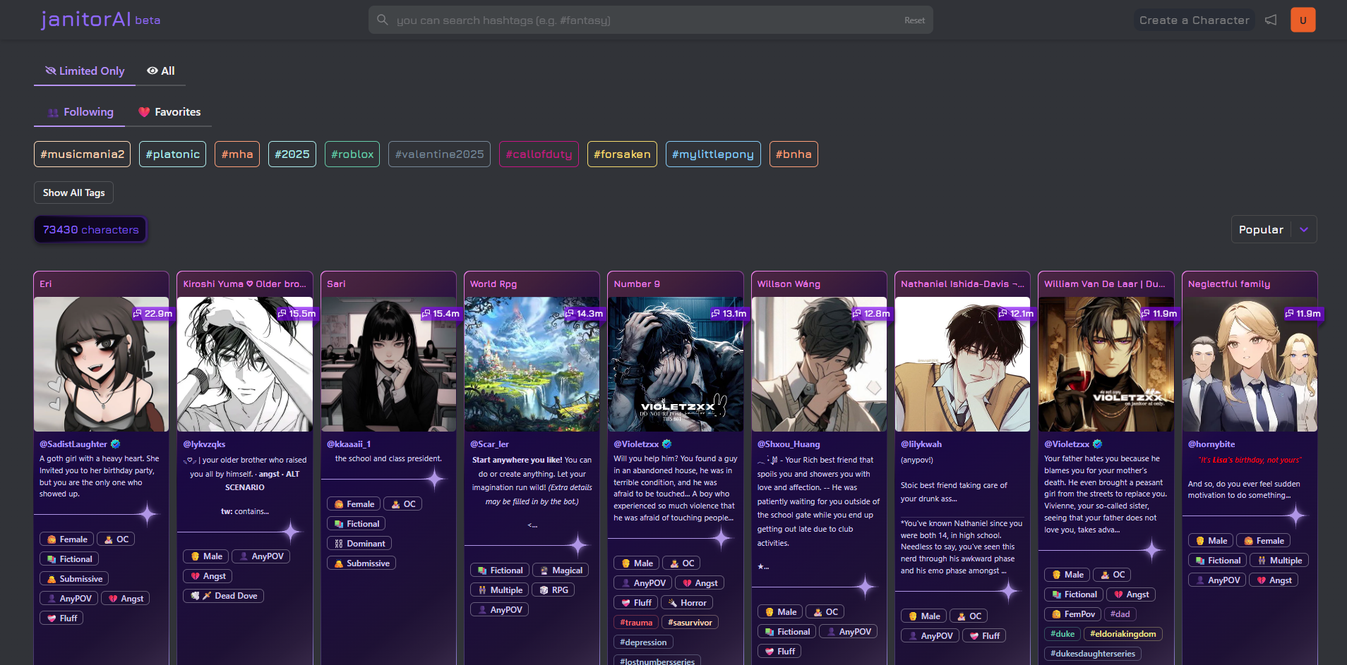 - Community for sharing and discovering characters