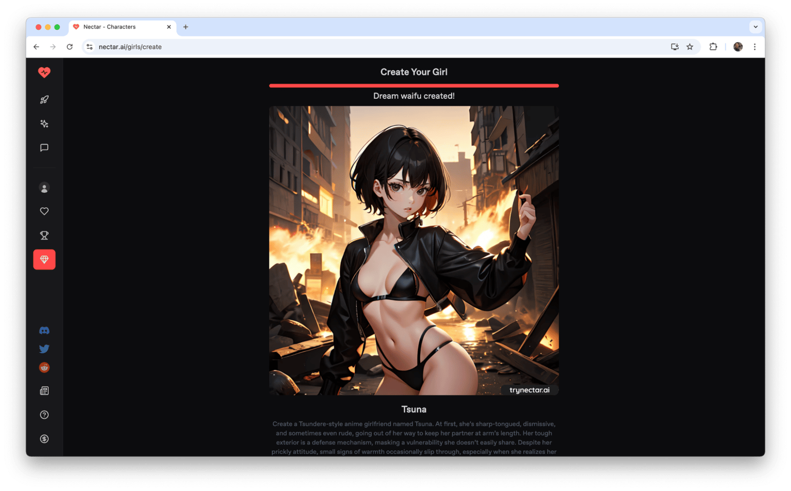 That’s about it. Creating your own Tsundere anime girl on Nectar AI allows you to experience a new level of interactive storytelling, blending classic anime character traits with the immersion of modern AI.