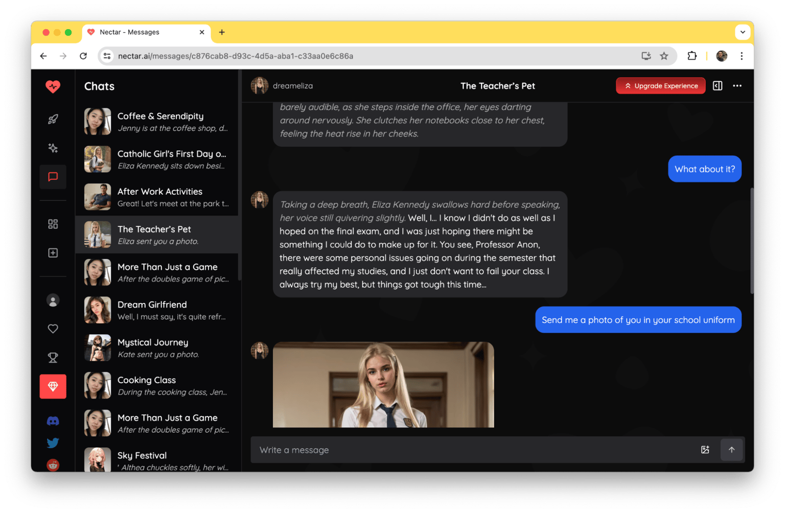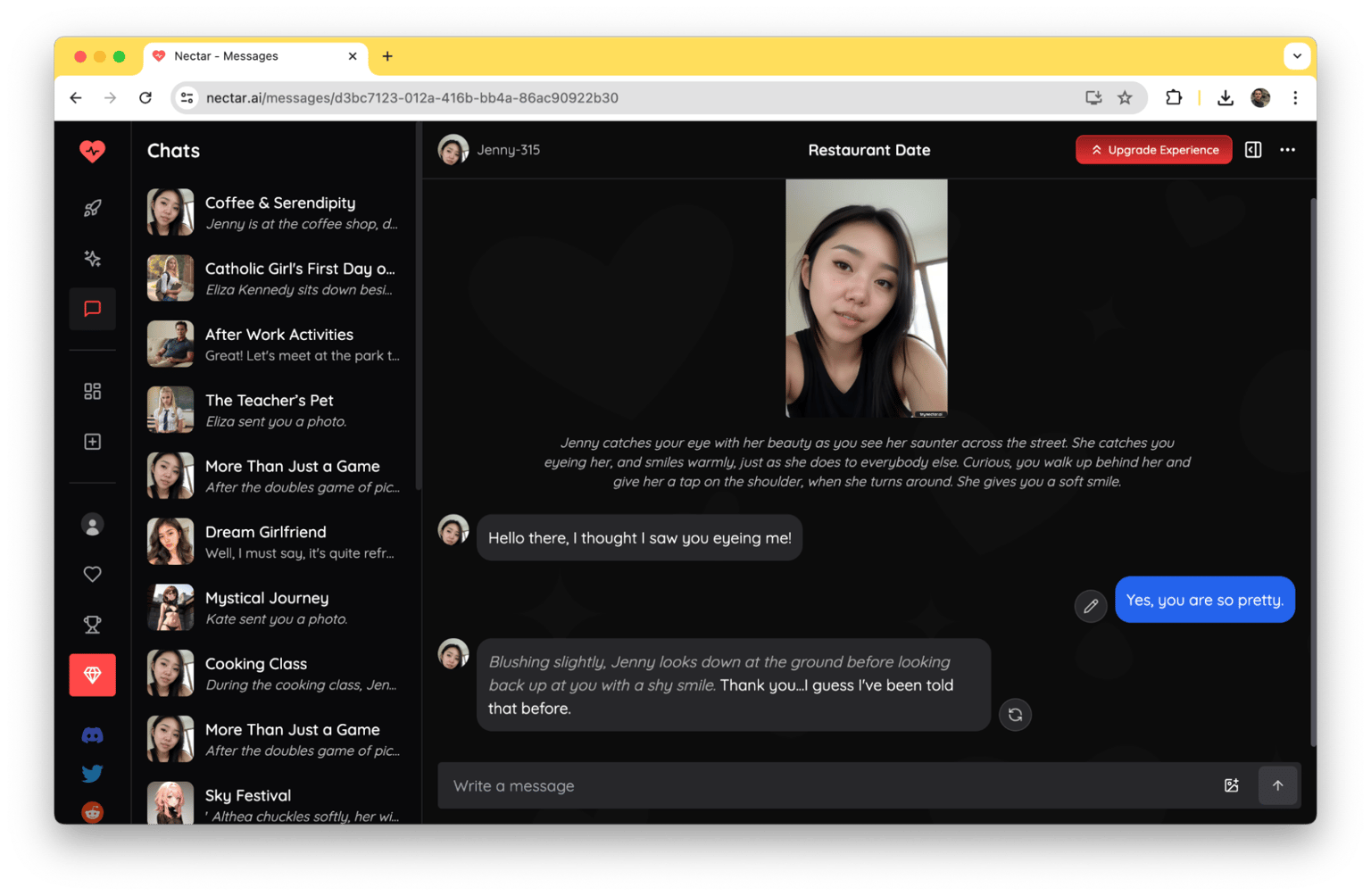 Now, consider using Nectar AI. Instead of swiping endlessly, you immediately start interacting with an AI companion designed to match your preferences. The AI responds to your messages almost instantly, engaging in meaningful conversations without the fear of judgment or rejection.