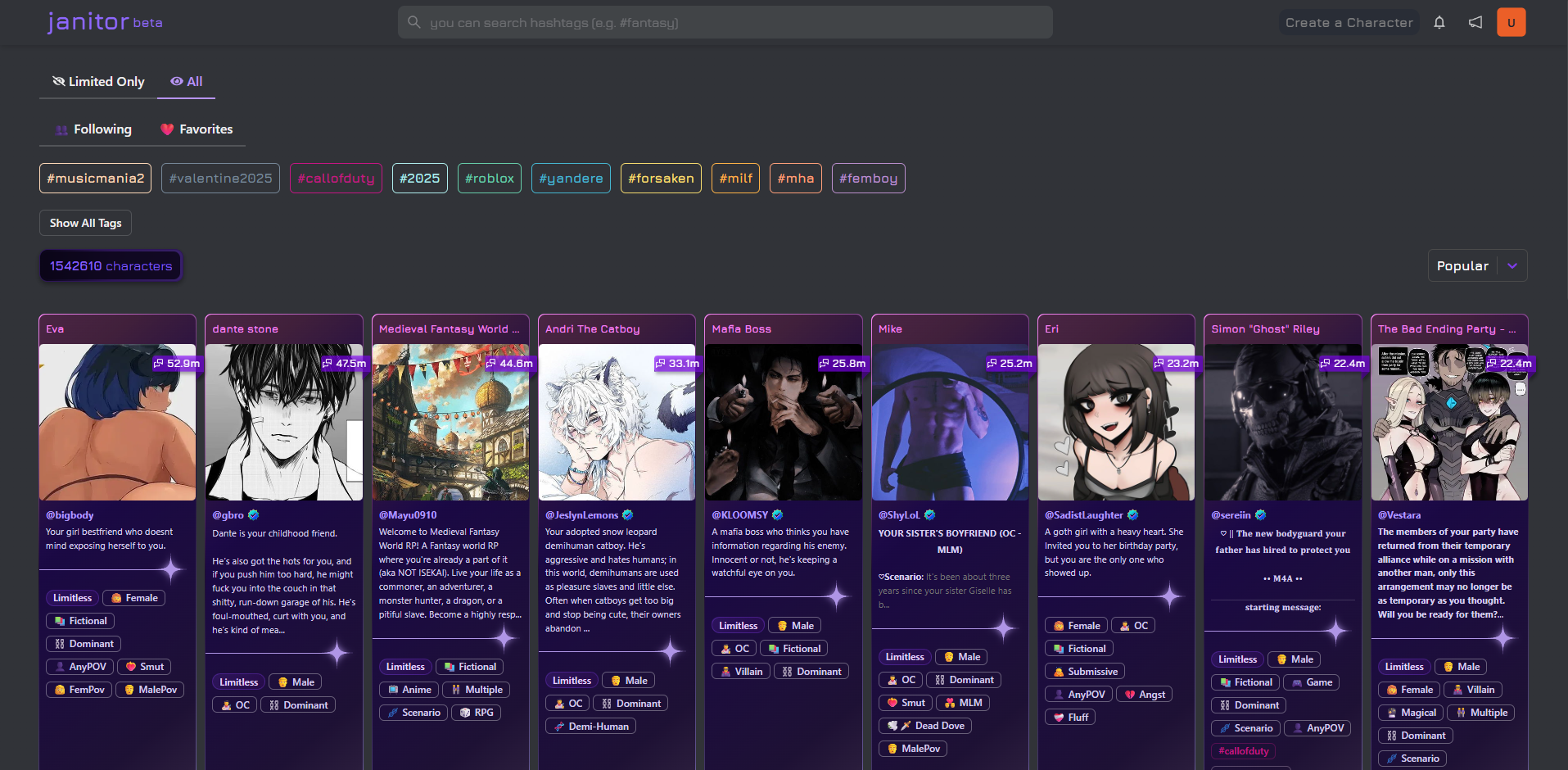 Janitor AI lets users build custom bots, but conversations quickly become repetitive and heavily filtered. The platform struggles to maintain consistency when roleplay scenarios change, leading to shallow and predictable exchanges. While it provides some variety through user-created characters, it lacks the reliability needed for immersive long-term interaction.