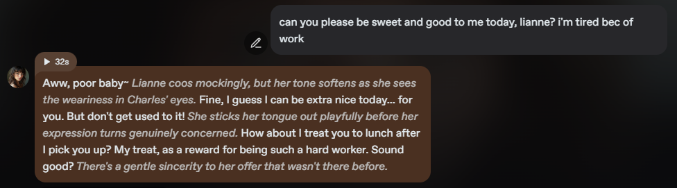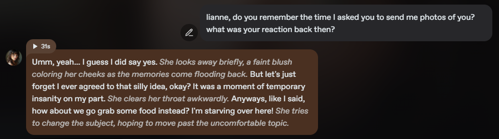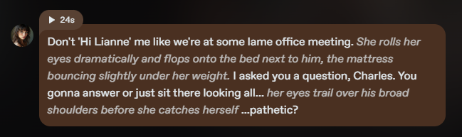 A chatbot that scores well in these areas gives roleplay a sense of realism, whether users are exploring fantasy adventures, romantic encounters, or casual slice-of-life stories.