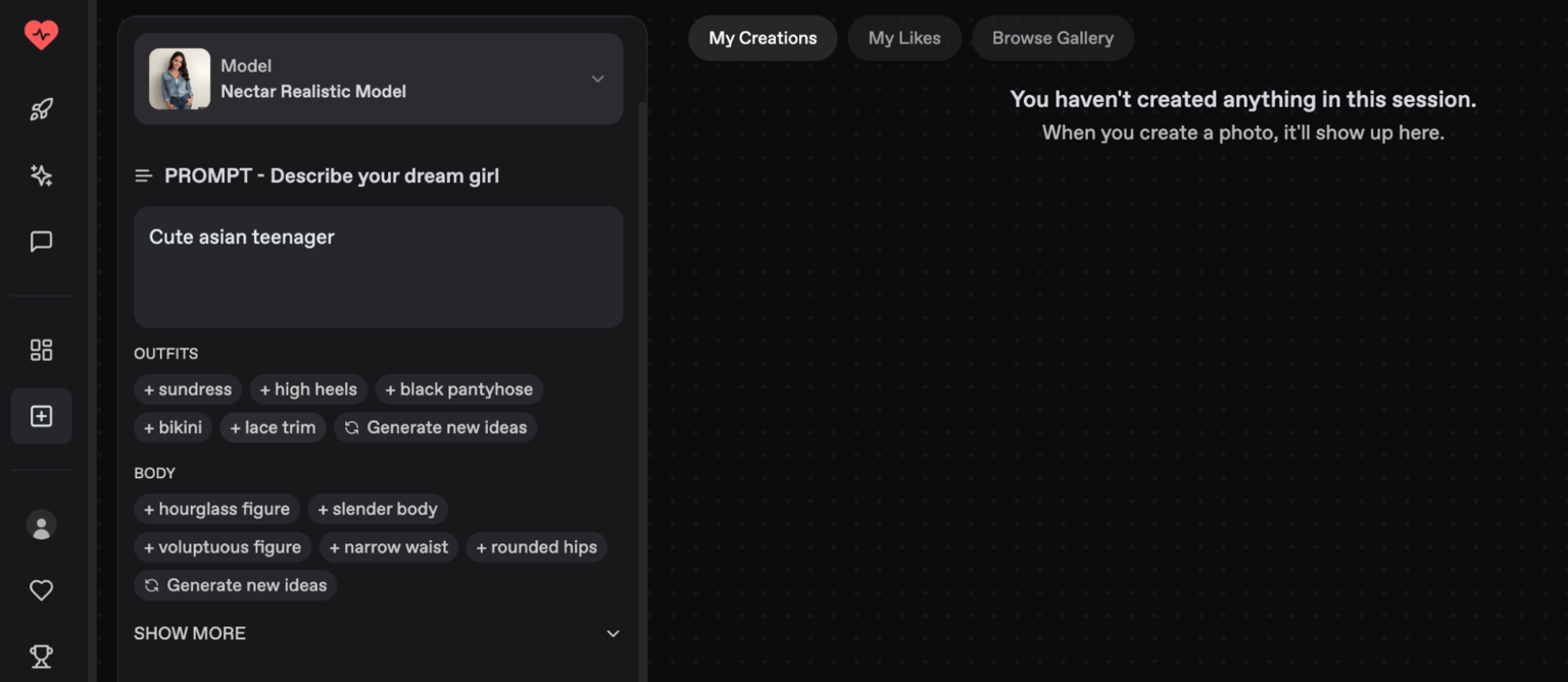 - Generate: After tweaking the details to your satisfaction, click the generate button to create the visual representation of your AI girlfriend.