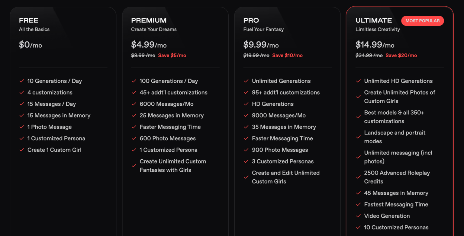 Nectar AI offers a range of pricing plans to cater to different levels of engagement. The free plan gives users access to the platform with some limitations, such as reduced access to customization features and fewer interactions with the AI characters. It’s a great way to test the waters and see if Nectar AI is right for you.