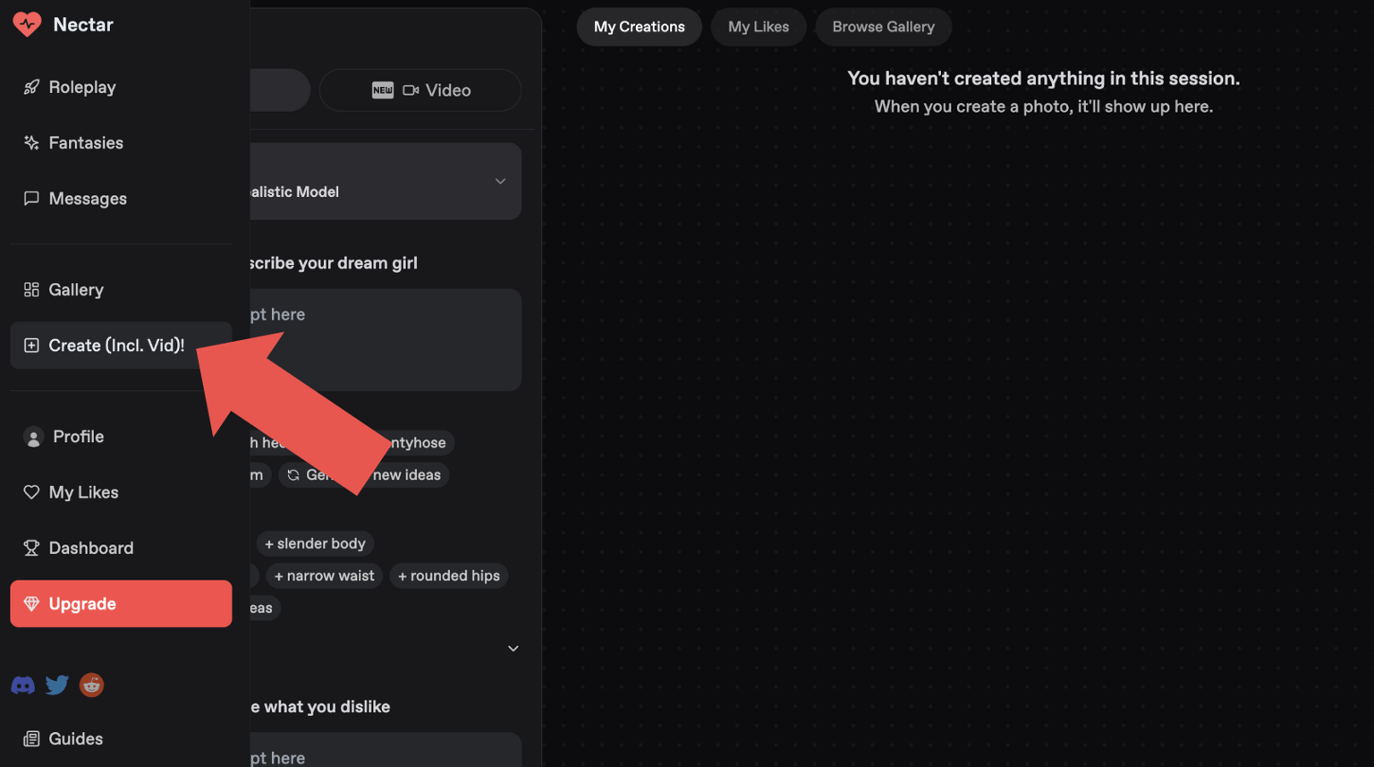 - Start Creating: Once logged in, click the "Create" button on the left sidebar. This takes you to the character creation dashboard.