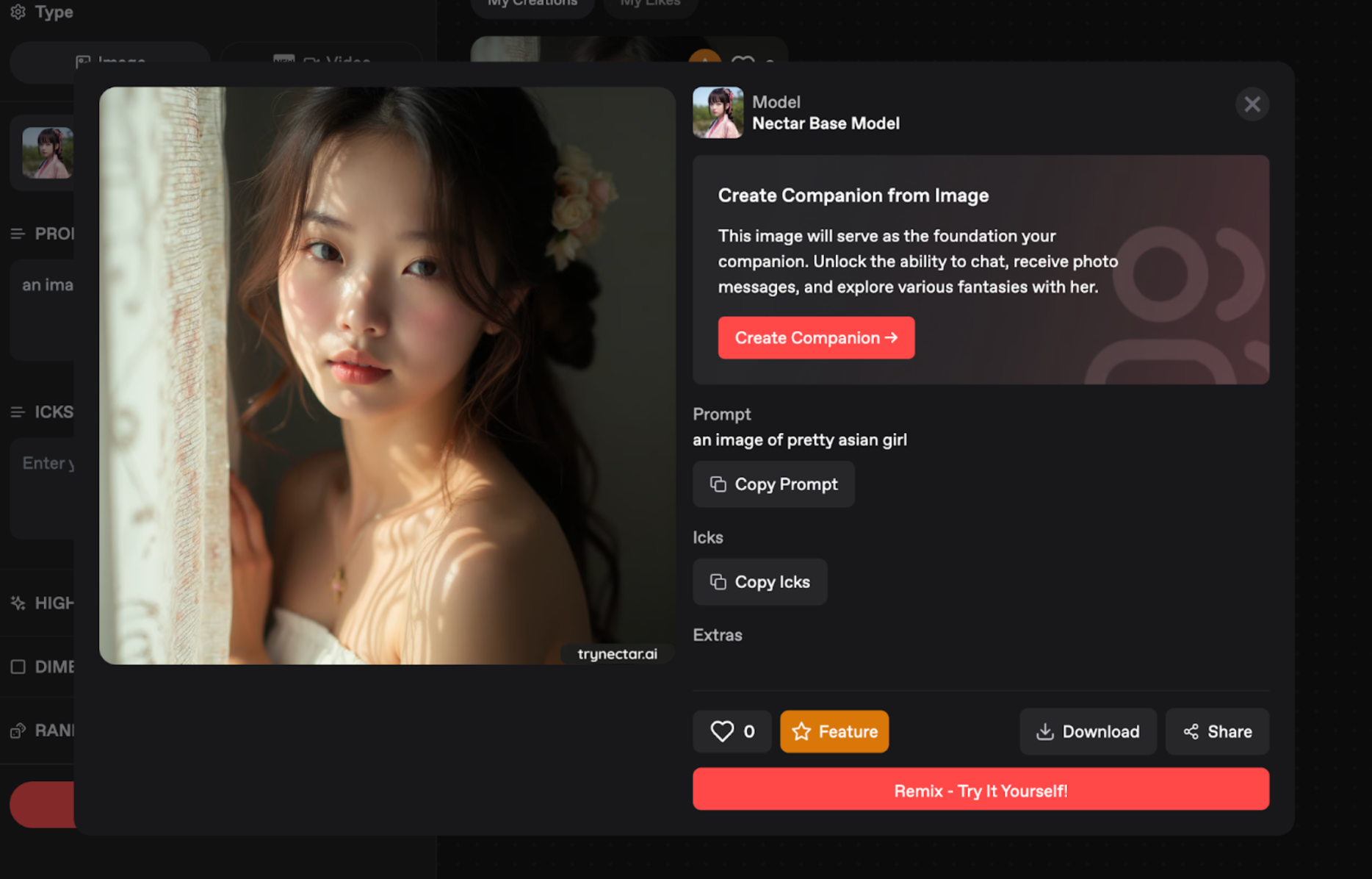 - Beyond text, Nectar AI also generates high-quality images of AI companions, making the experience more visually engaging. Users can even switch to AI-generated videos, bringing their companions to life in new ways. Voice support adds another layer of realism, allowing users to hear their AI partner speak, creating a stronger sense of connection.