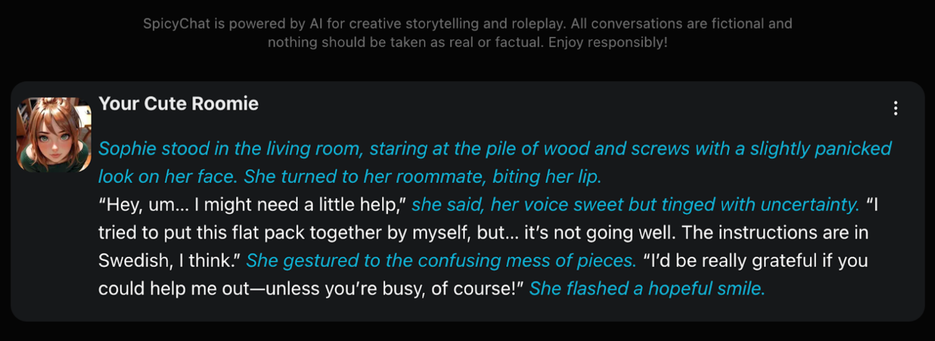 In Spicy Chat, however, the tone is much more upfront and suggestive, creating a strong invitation for sexual interaction: