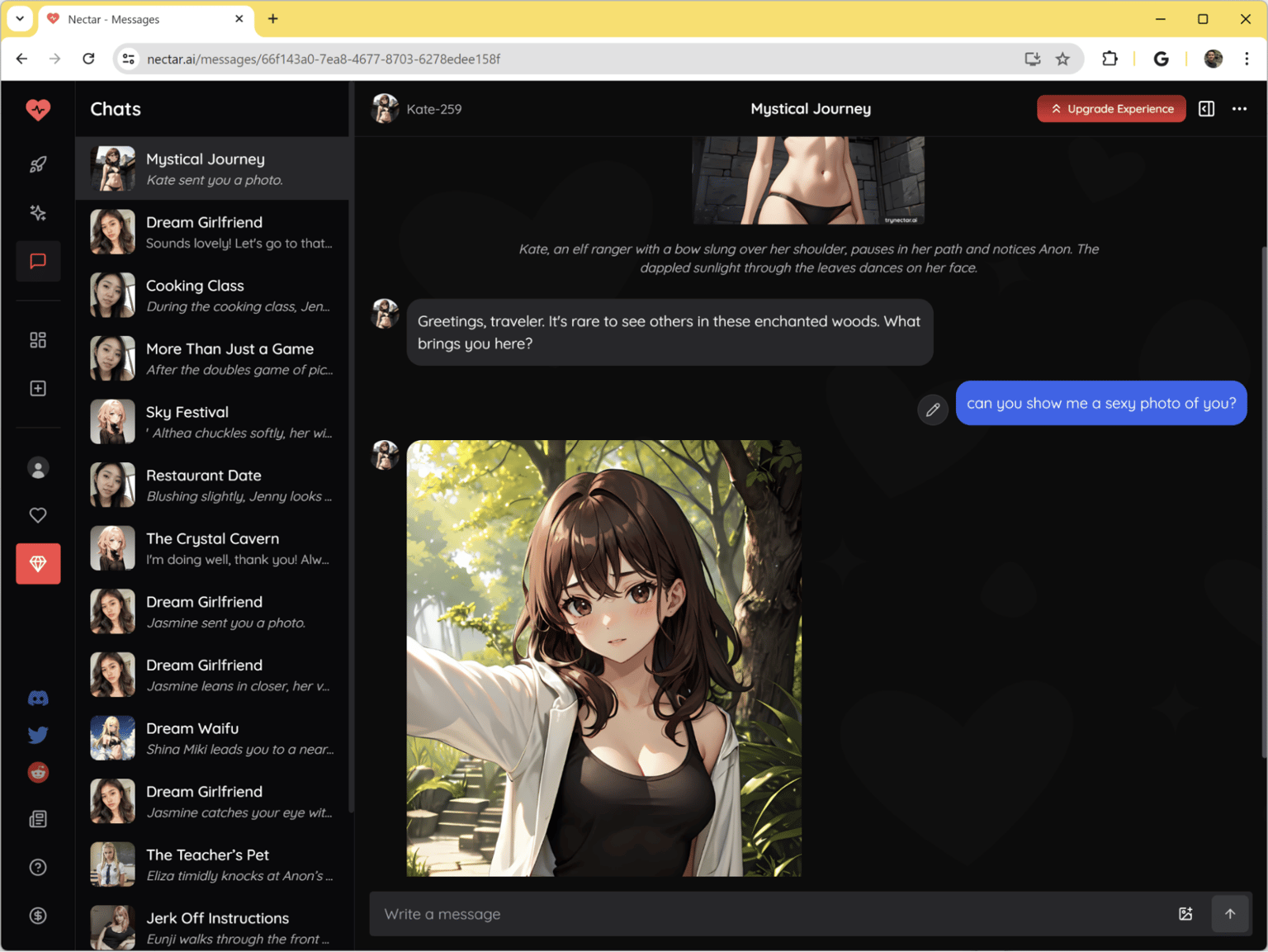 Take a look at this example from Nectar AI where Kate sent me a sexy photo of her without any questions.