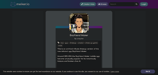 Boyfriend Maker is a retro-style romance chatbot app ideal for users who love quirky, character-driven AI dating. Its strength lies in simple, amusing interactions rather than high-end visuals.