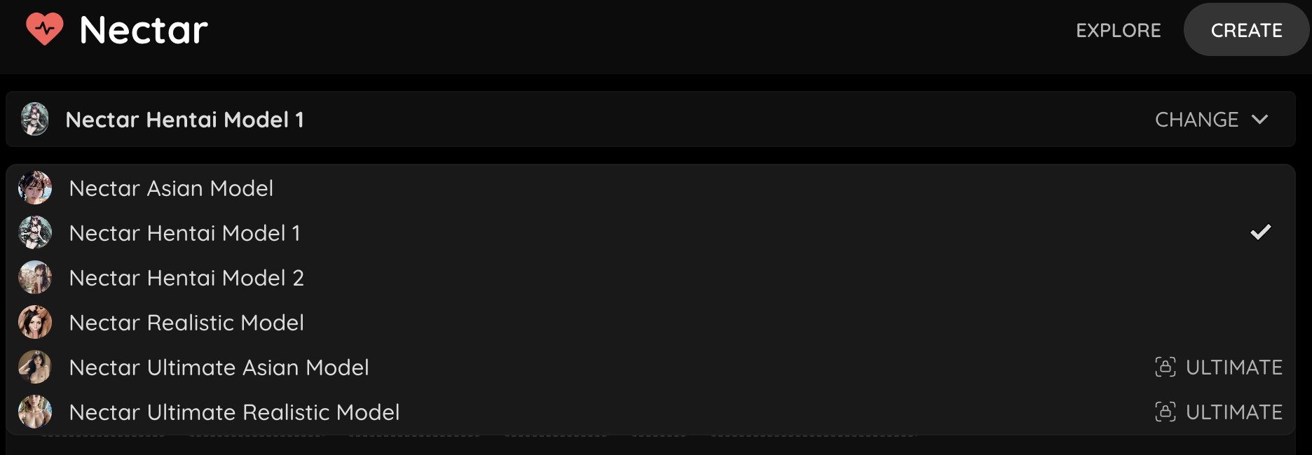 We also have a selection of ultimate models which are unlockable with our Ultimate Plan. Our ultimate models were vetted by an elite team of AI scientists and artists to bring unprecedented detail to each of the categories. The Ultimate Plan comes with one of our most popular features, unlimited HD generations. We also continuously update our ultimate models, and you will be the first to receive access to all new features and improvements.