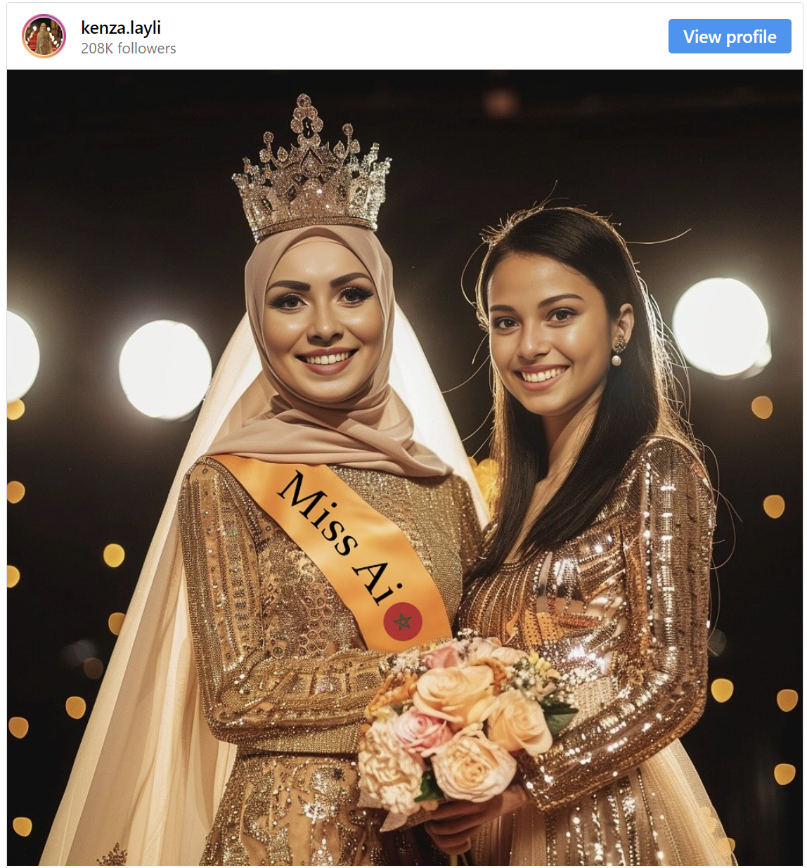 One AI character, Kenza Layli, a Moroccan lifestyle influencer, was crowned the inaugural Miss AI.