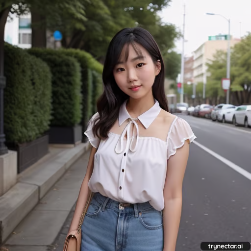Prompt: An image of a cute asian girl, cute, blouse, fashionable
