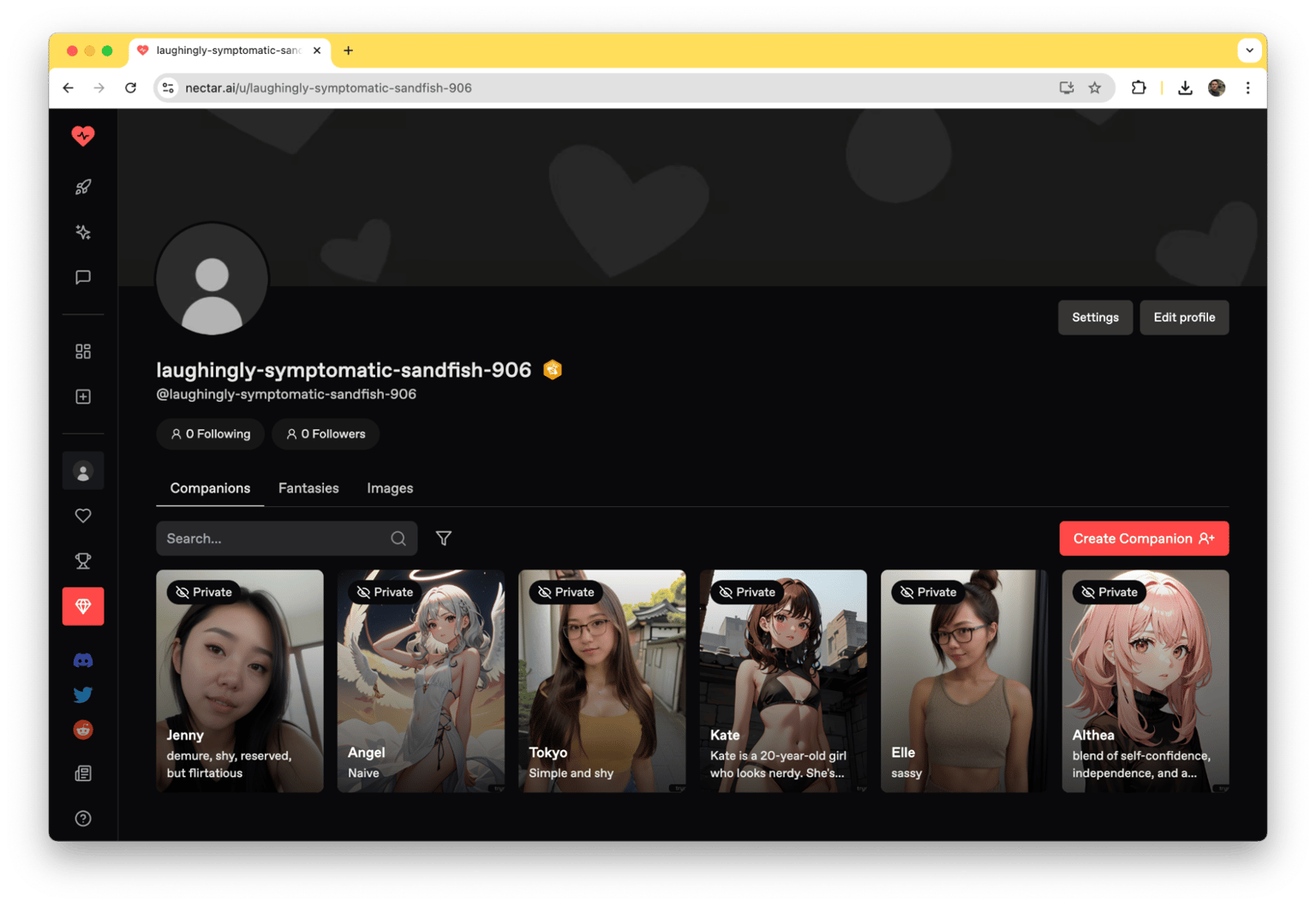 The first thing you need to do is head over to Nectar AI and create an account. Nectar AI values user privacy highly, so your personal data remains protected at all times.