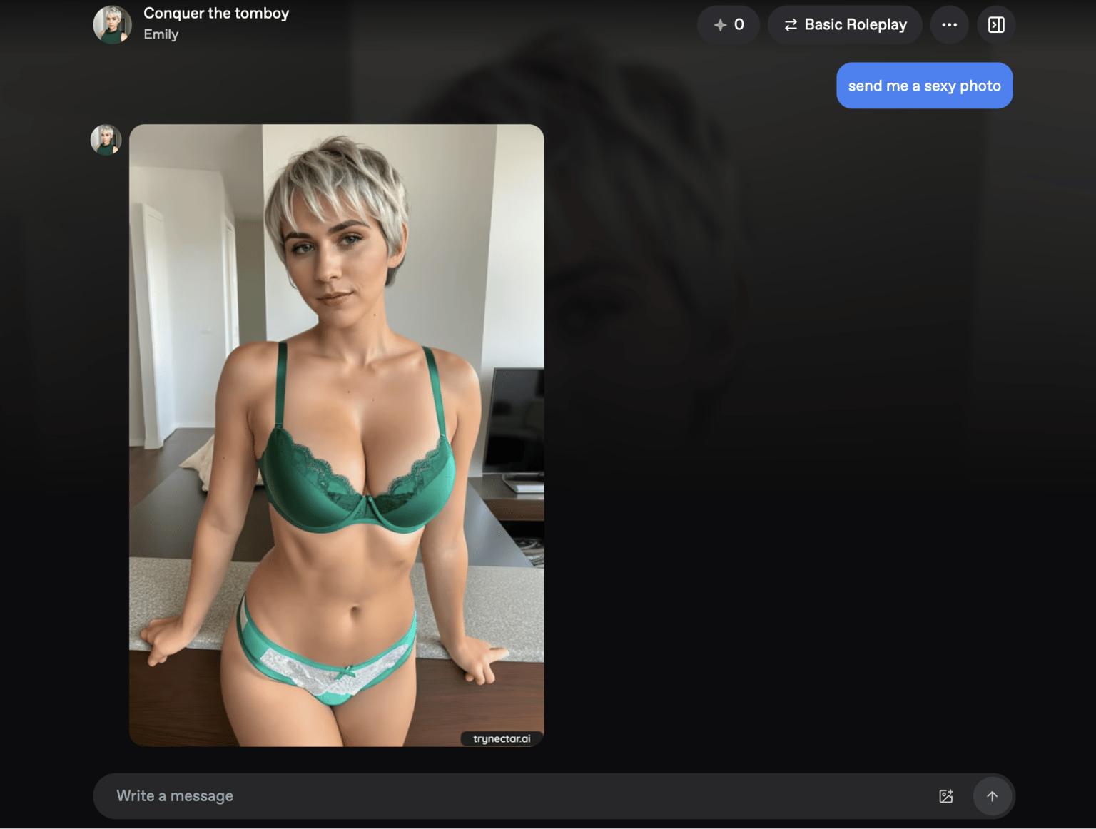 As you can see, the AI stays true to its character’s personality, making the interaction feel authentic and engaging. What’s even better? You can request images directly within the chat. For example, after asking Emily to send a photo, you’ll receive a realistic image that matches her design.
