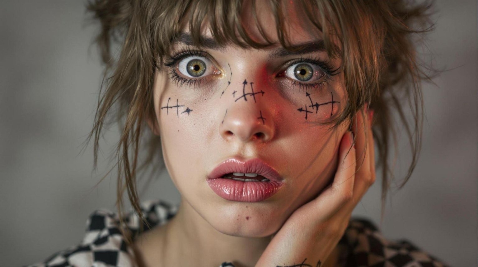 Prompt: A freaky and strange looking girl, colorful hair, a mischievous smile, and a quirky fashion sense