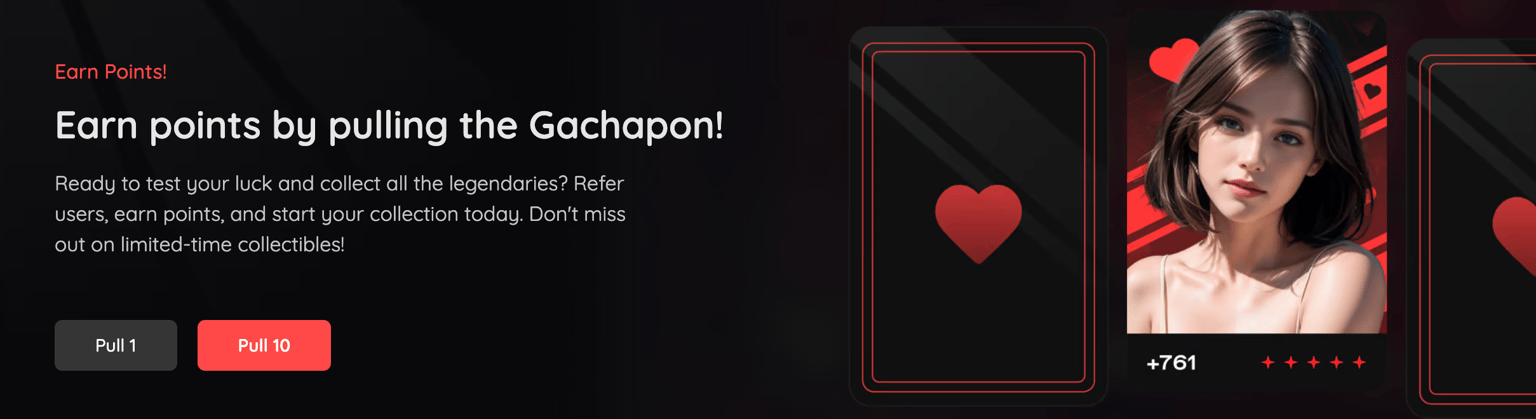 Once you earn a ticket, you will be able to roll the Gachapon and receive a collectible card. The collectible card can be of differing rarities of either Common, Rare, Epic, or Legendary. These cards will not only give an increasing amount of points the more you go up the rarity scale, but will also serve as an additional collectible you can show off to others. If you collect them all, special surprises will await 😉
